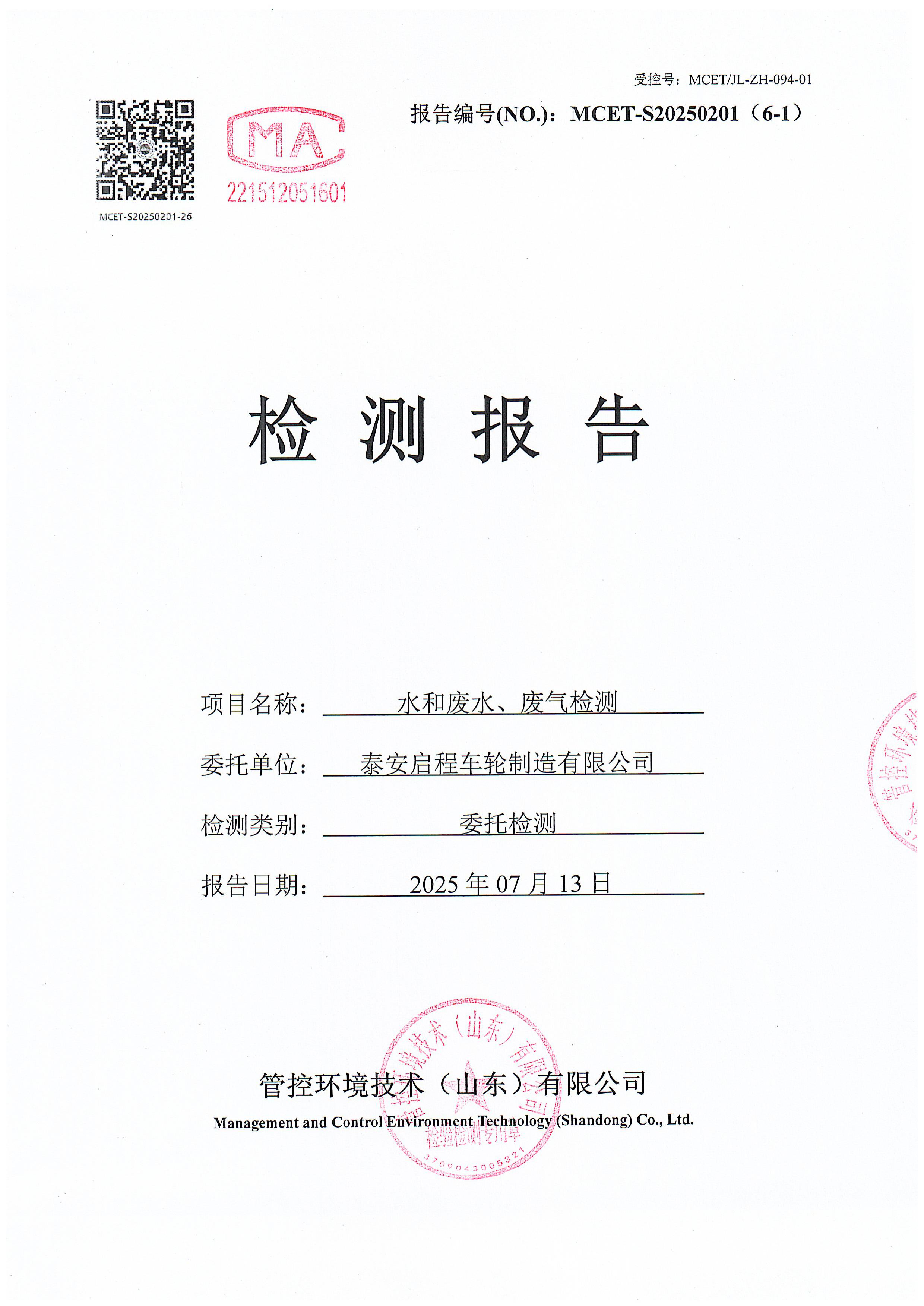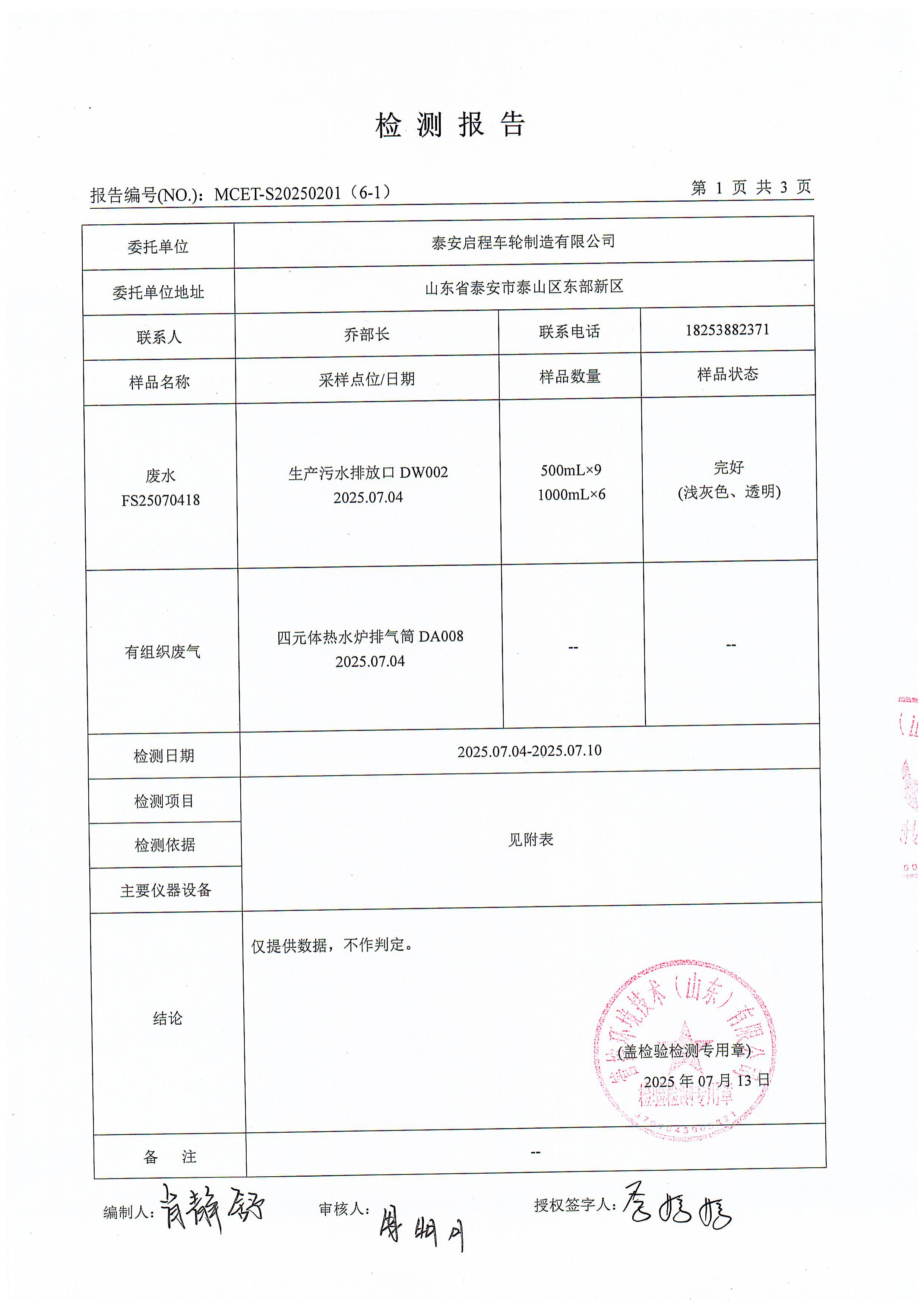 泰安啟程車輪制造有限公司2025年7月份環(huán)境污染物排放檢測報(bào)告