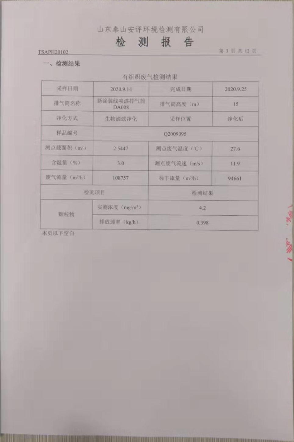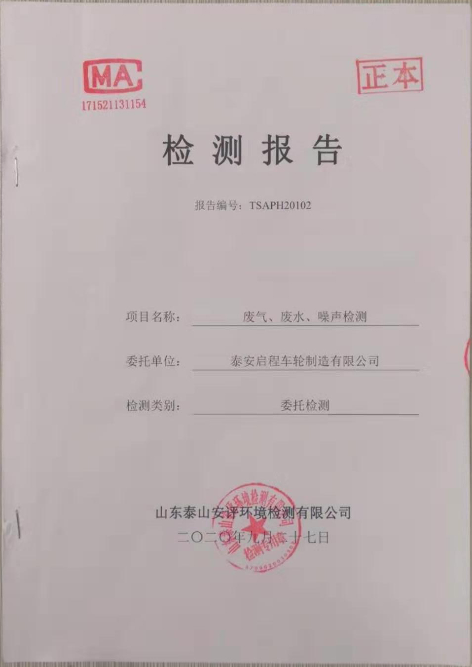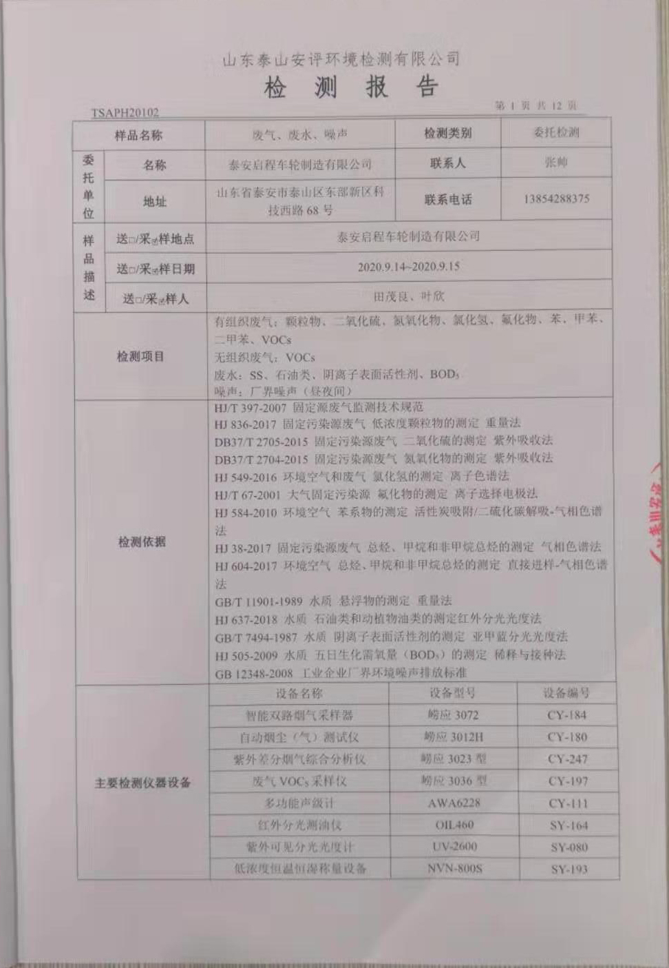 泰安啟程車輪制造有限公司2020年9月份環(huán)境污染物排放檢測報告