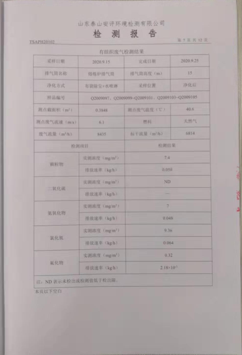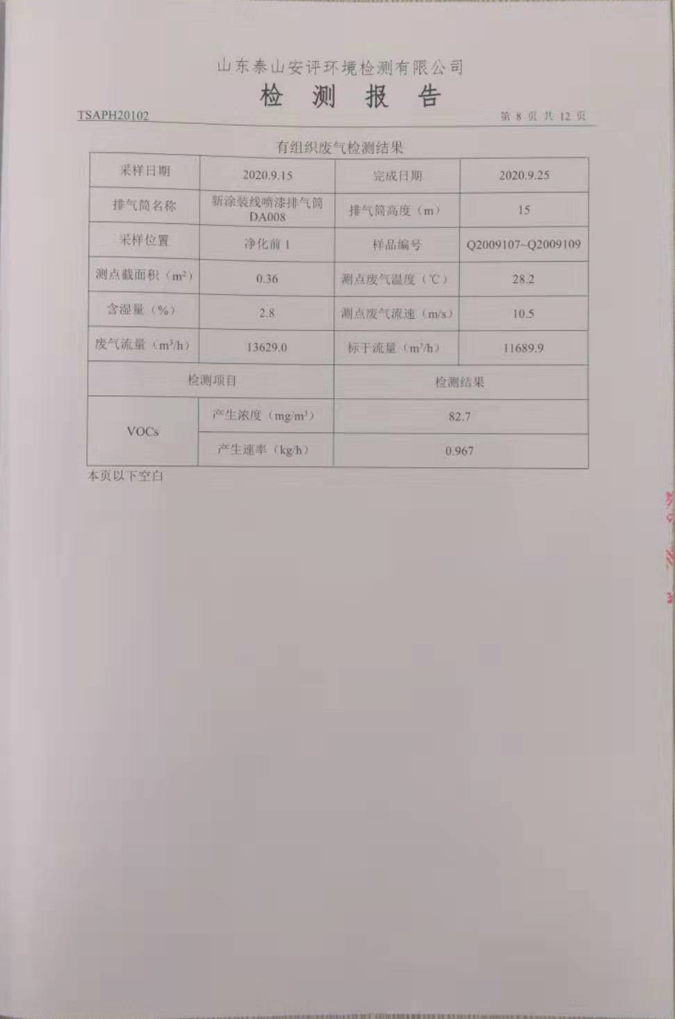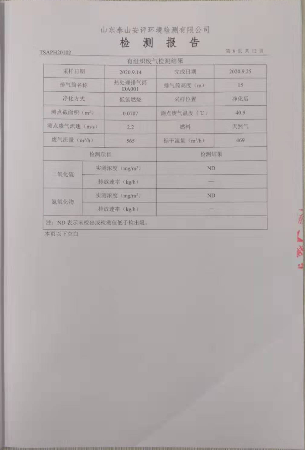 泰安啟程車輪制造有限公司2020年9月份環(huán)境污染物排放檢測報告