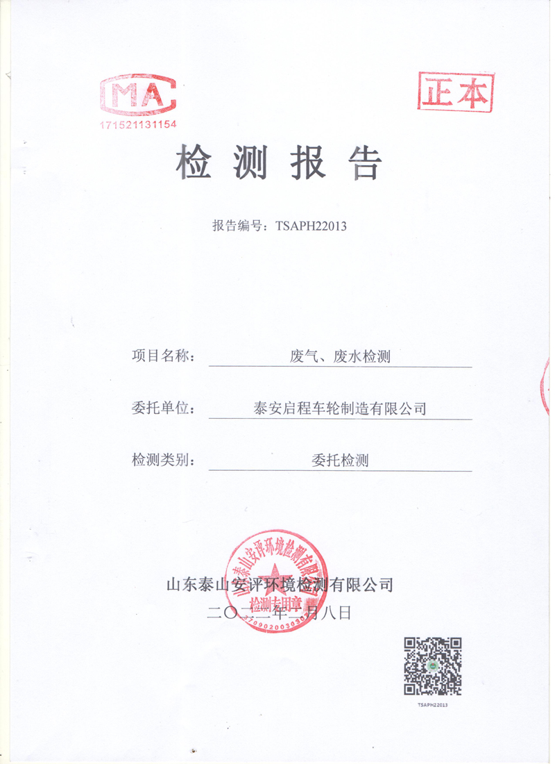 泰安啟程車輪制造有限公司2022年1月份環(huán)境污染物排放檢測(cè)報(bào)告
