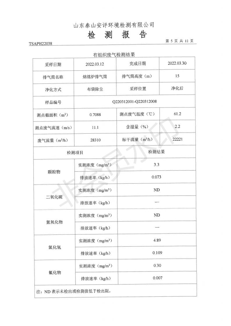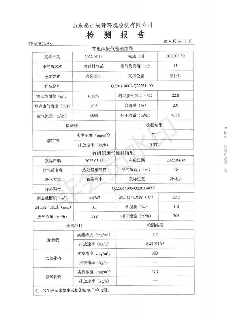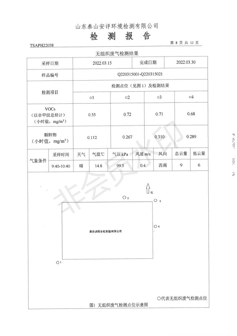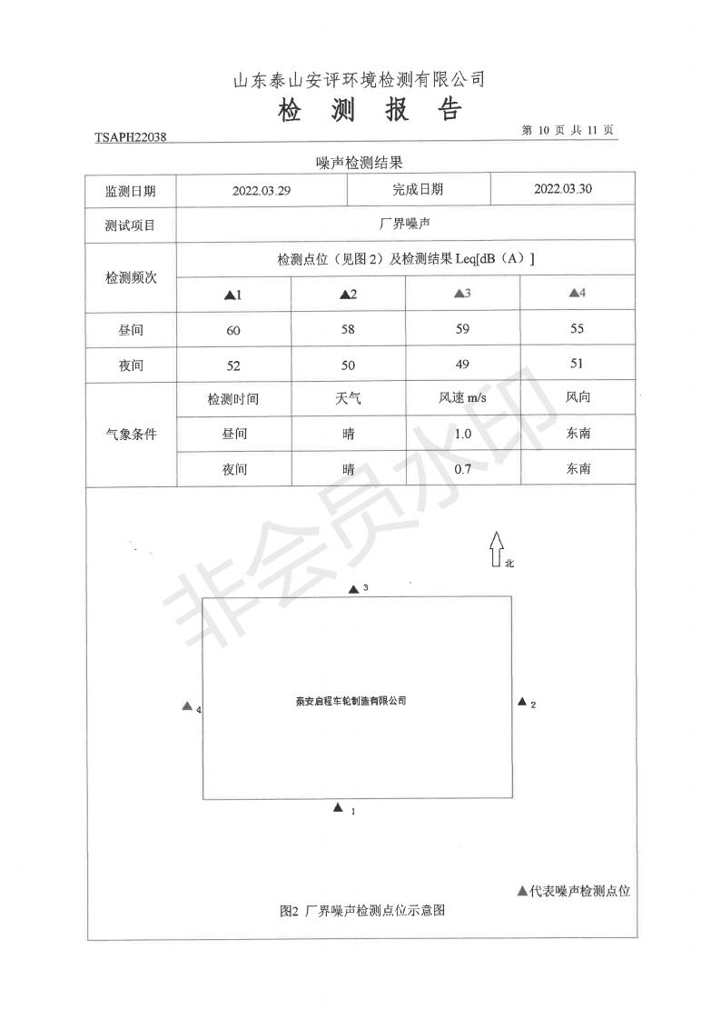 泰安啟程車輪制造有限公司2022年3月份環(huán)境污染物排放檢測報(bào)告