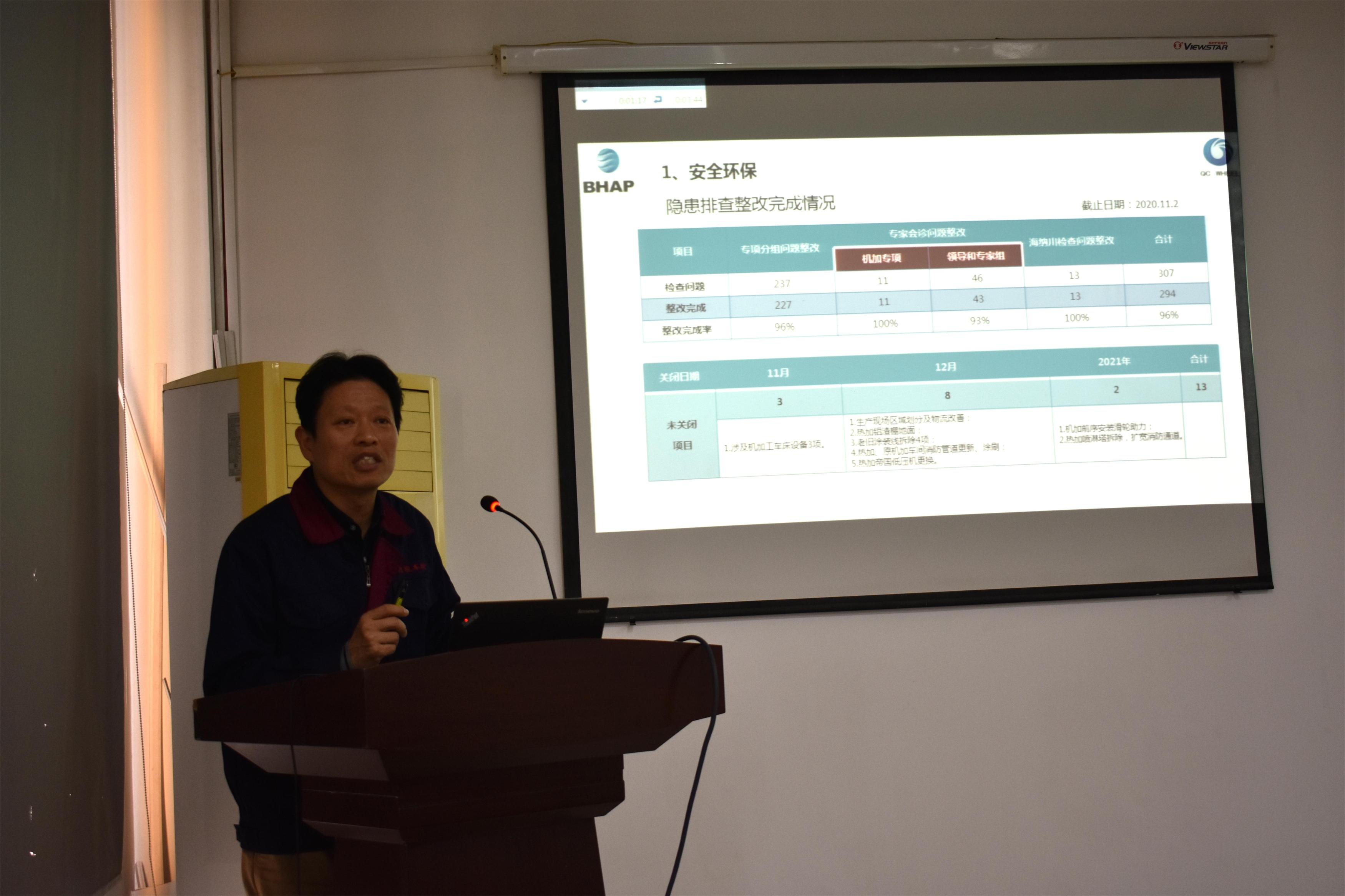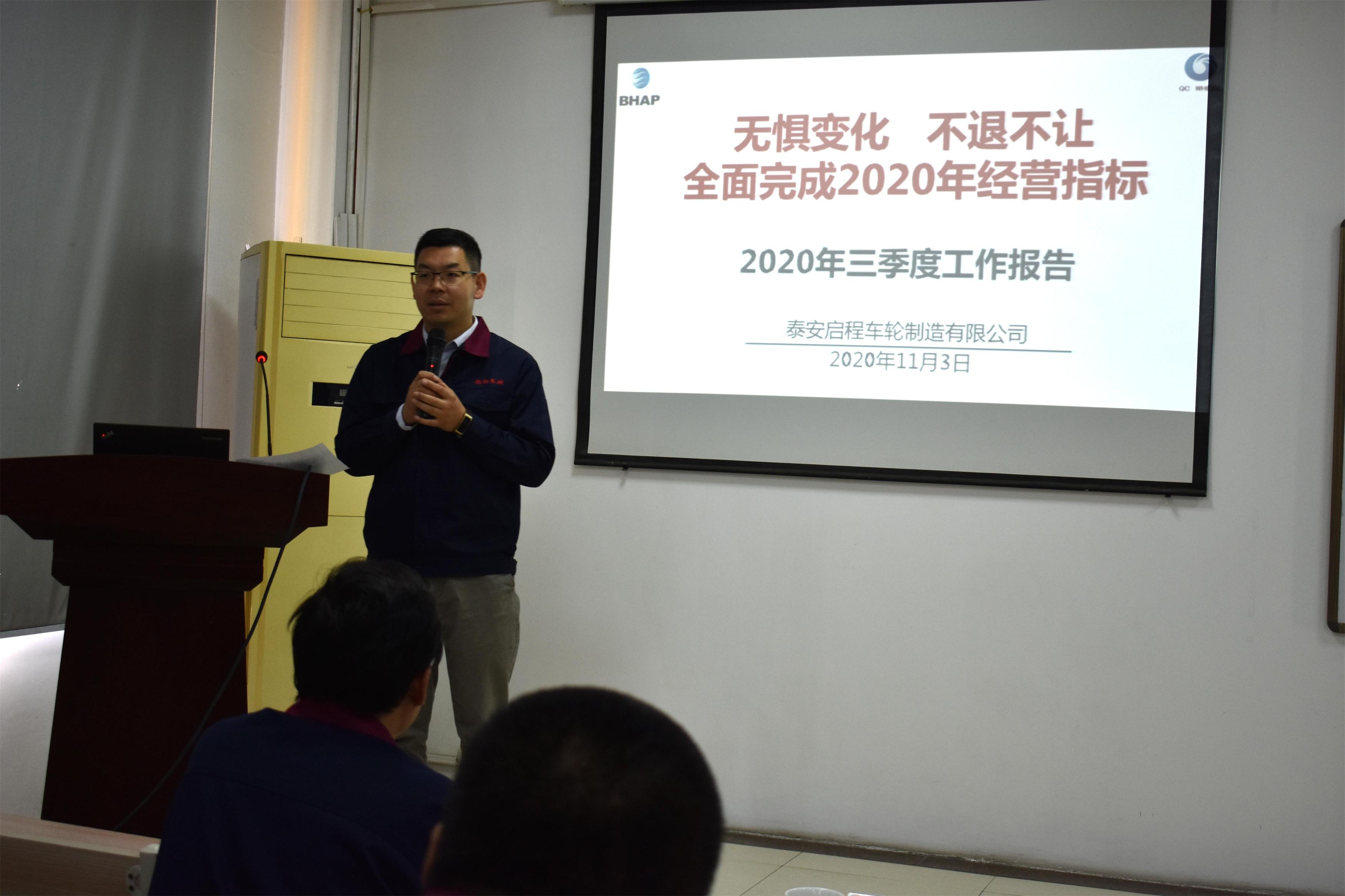 On behalf of the company’s leadership team, the company’s general manager Shen Zaigen made a work report titled "No fear of change, no retreat, and full completion of 2020 business indicators". Shen Zaigen, general manager of safety and environmental protection, KPI indicators, output quality, order sales, , Business highlights, party and mass work, problem countermeasures, etc., made a detailed summary of the work in the third quarter, and made specific arrangements for the completion of the fourth quarter's business indicators, market development, new technologies, new processes, and second-phase projects. General Manager Shen Zaigen specifically emphasized that safety and environmental protection must not be relaxed, and safety must be normalized. Employees must always pay attention to production safety, protect themselves, and ensure safe production.