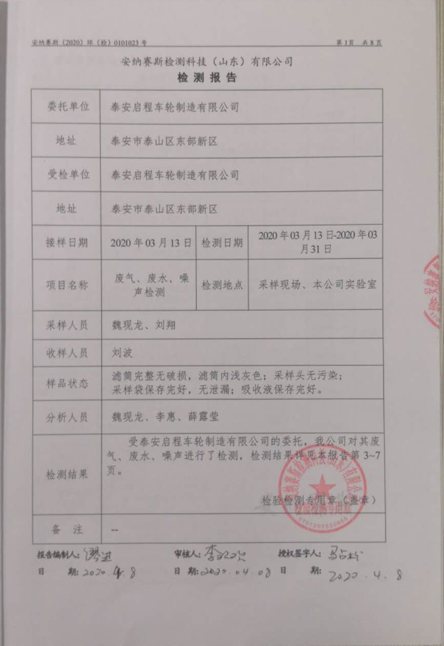 泰安啟程車輪制造有限公司2020年3月份環(huán)境污染物排放檢測報告