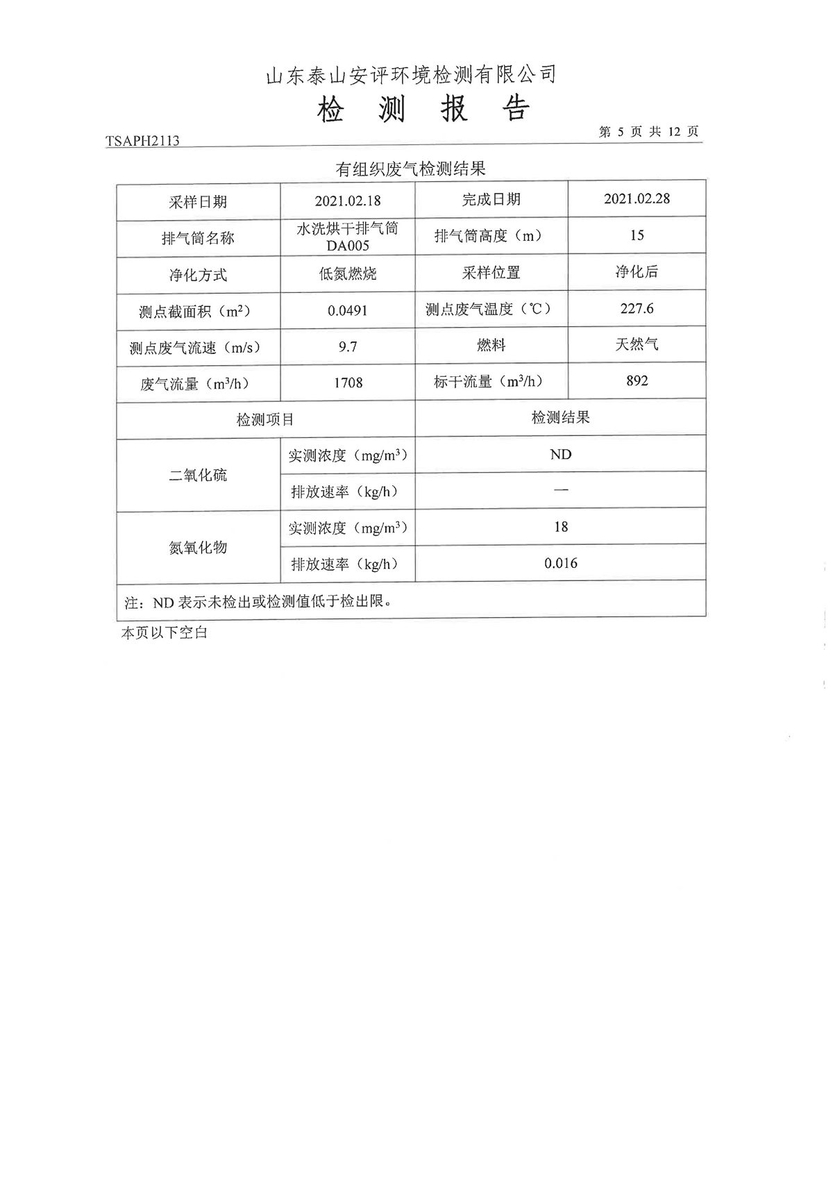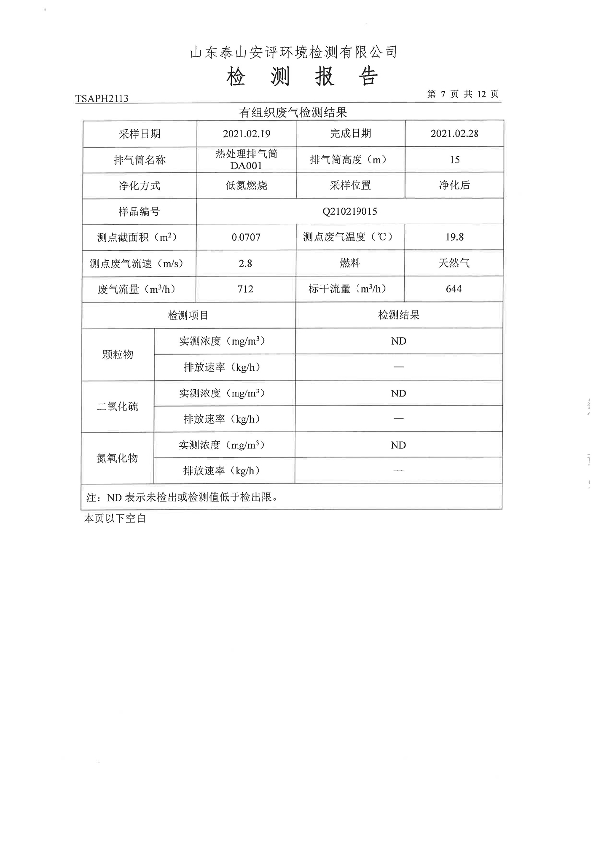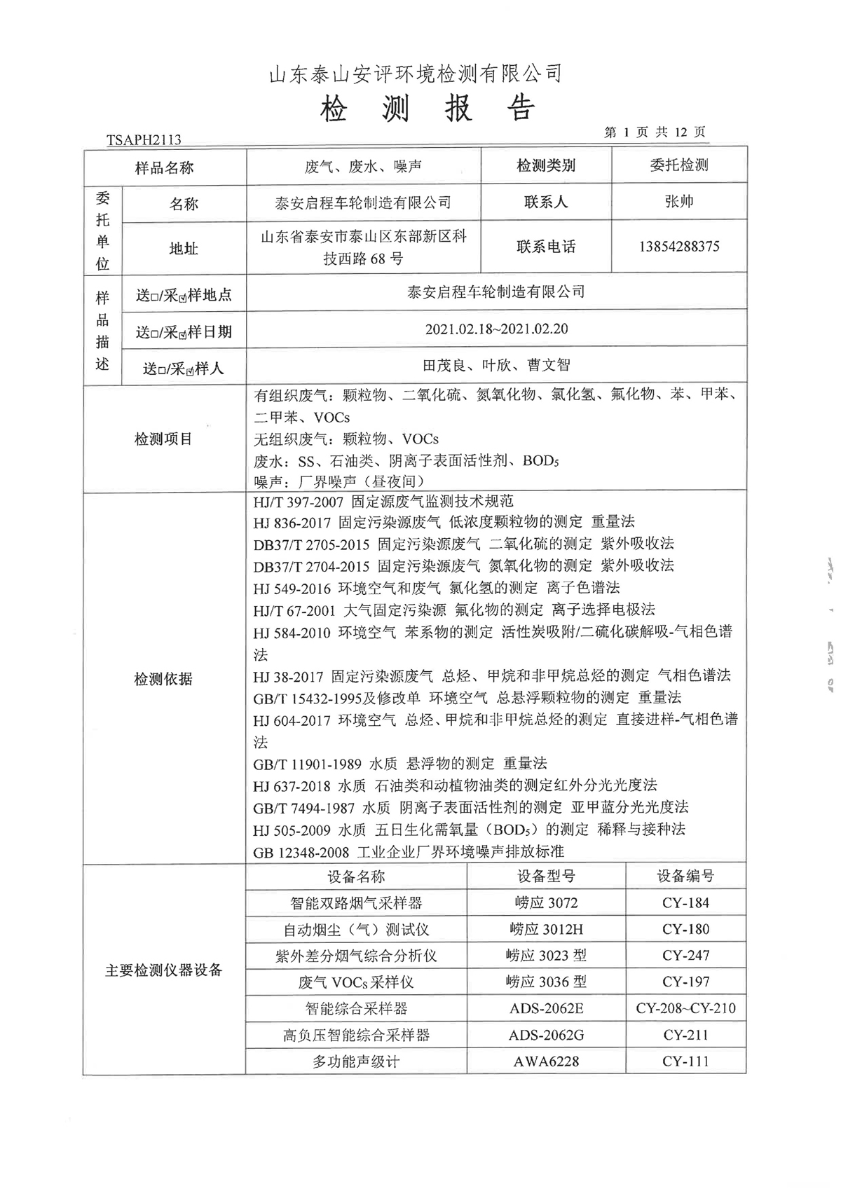 泰安啟程車輪制造有限公司2021年2月份環(huán)境污染物排放檢測報告