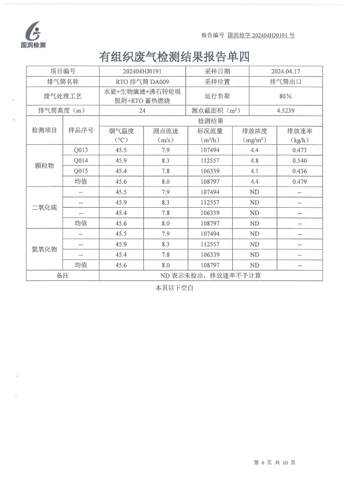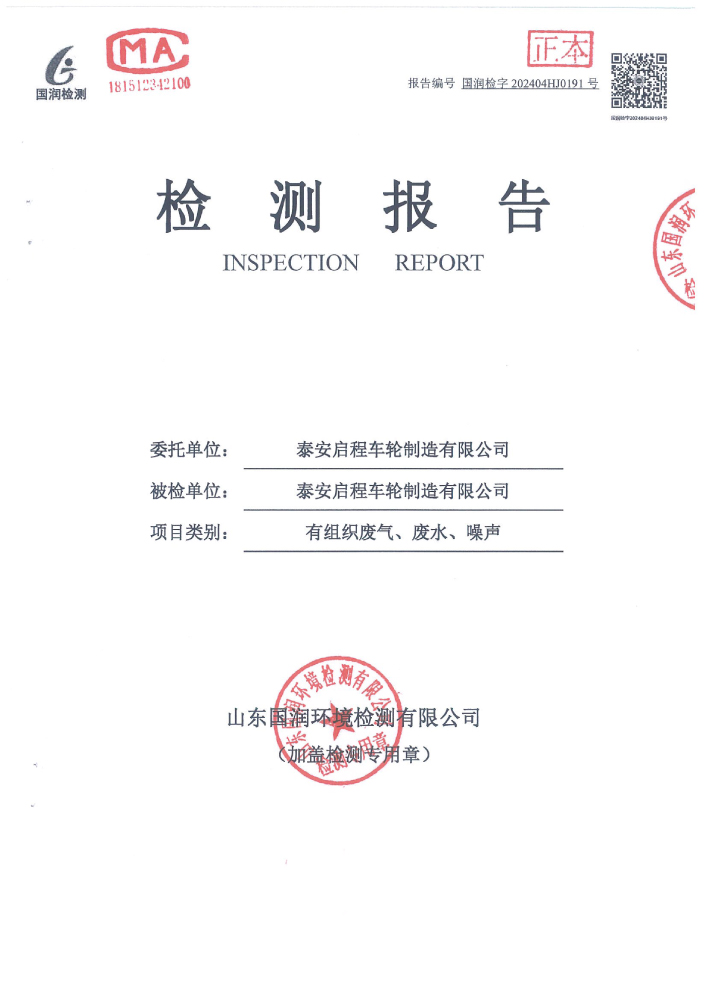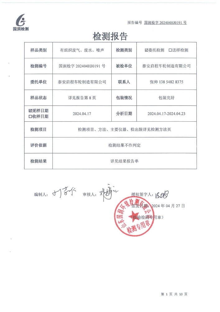泰安啟程車(chē)輪制造有限公司2024年4月份環(huán)境污染物排放檢測(cè)報(bào)告
