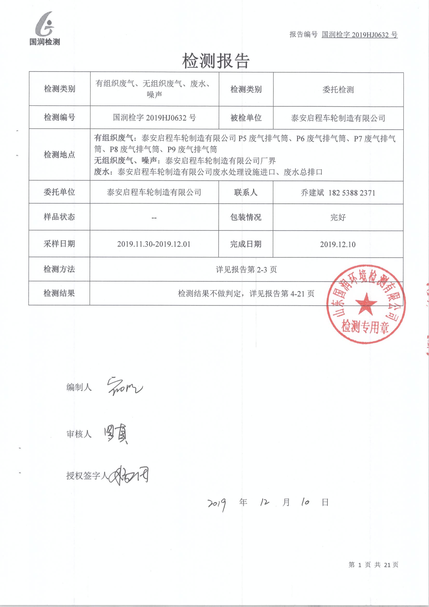 泰安啟程車輪制造有限公司2019年11月份檢測(cè)報(bào)告