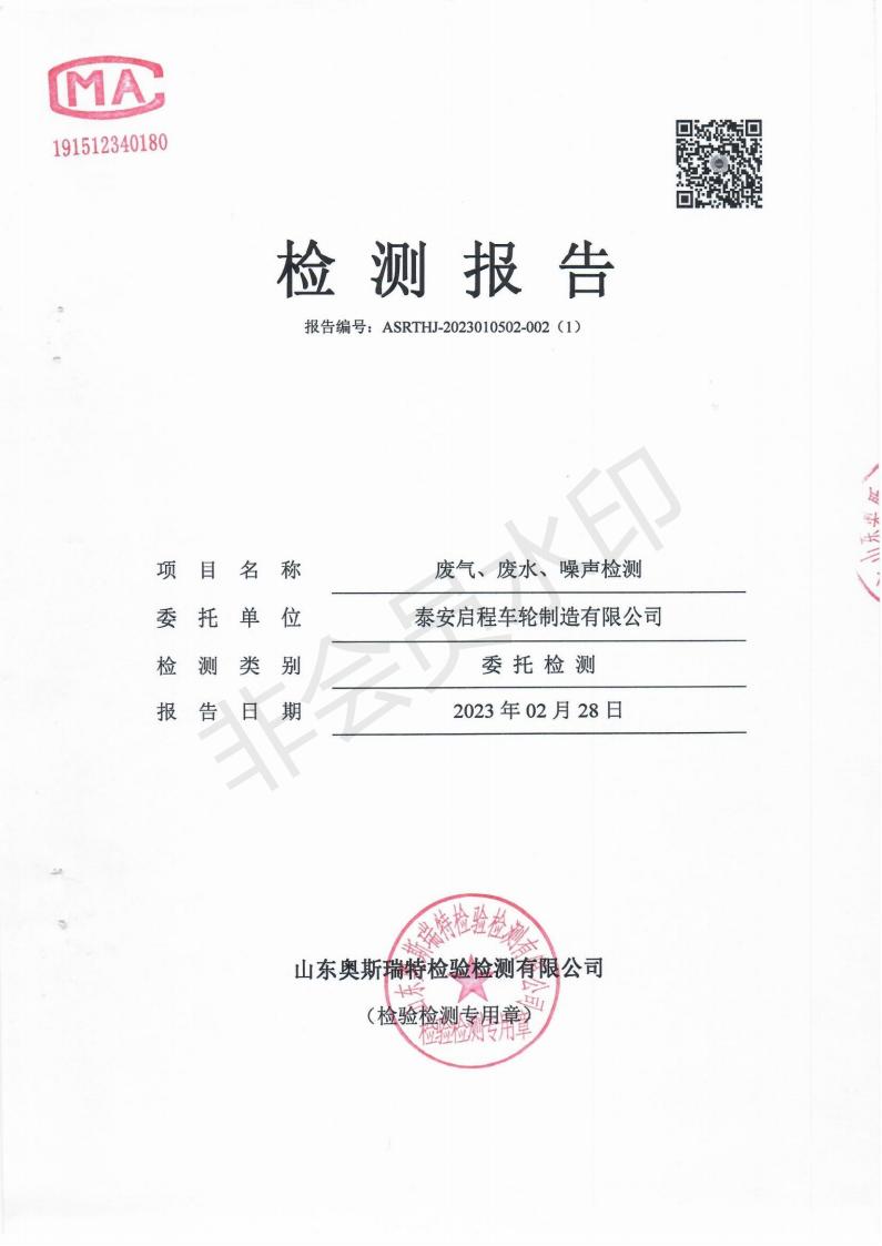 泰安啟程車輪制造有限公司2023年2月份環(huán)境污染物排放檢測報告