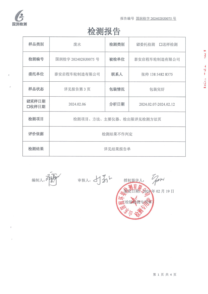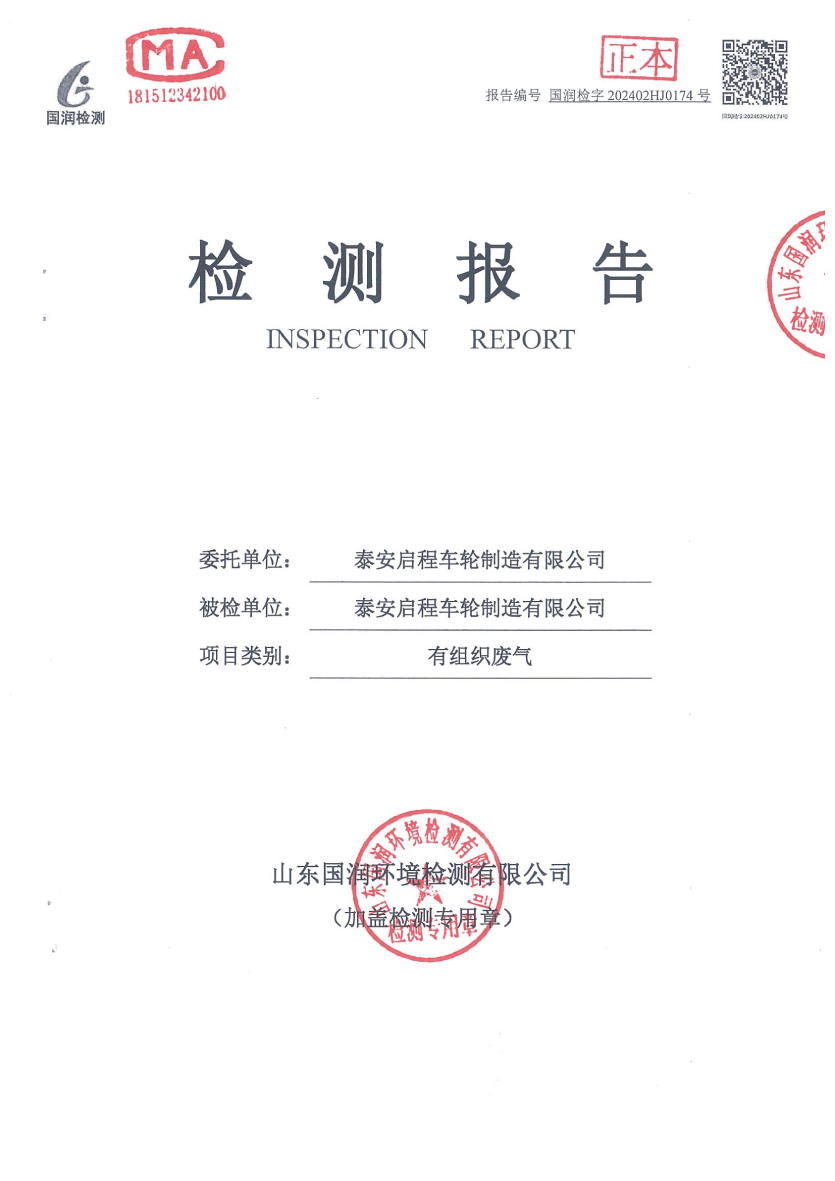 泰安啟程車輪制造有限公司2024年2月份環(huán)境污染物排放檢測報告