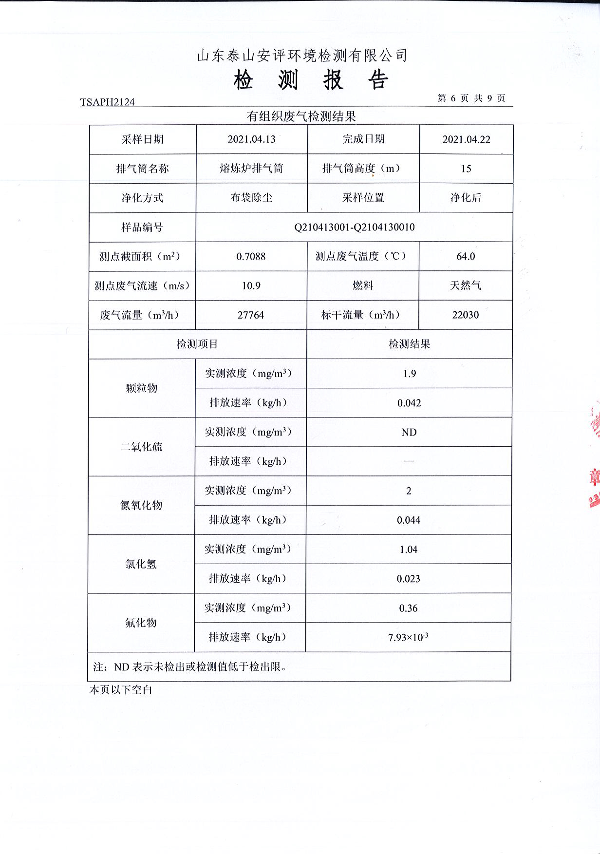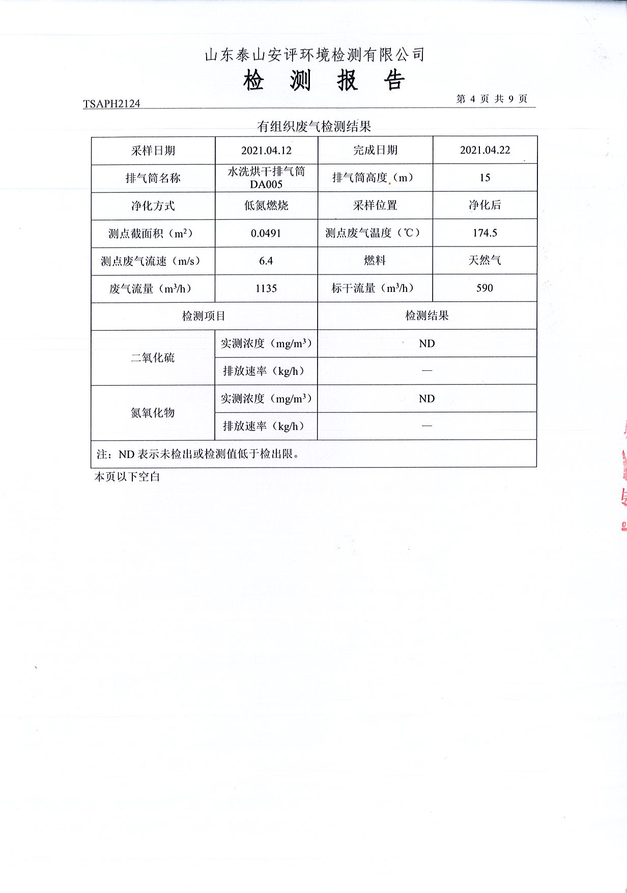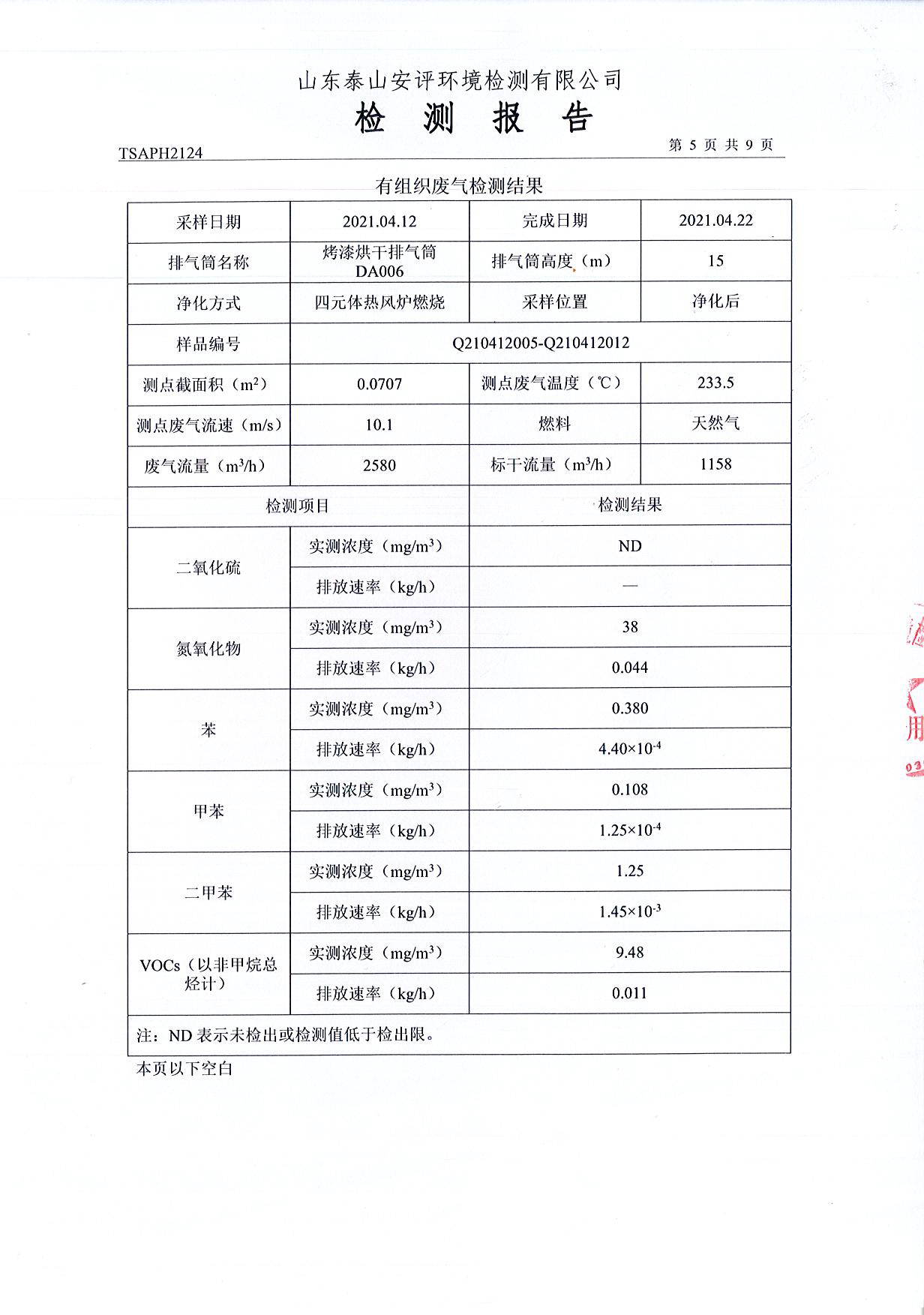 泰安啟程車輪制造有限公司2021年4月份環(huán)境污染物排放檢測(cè)報(bào)告