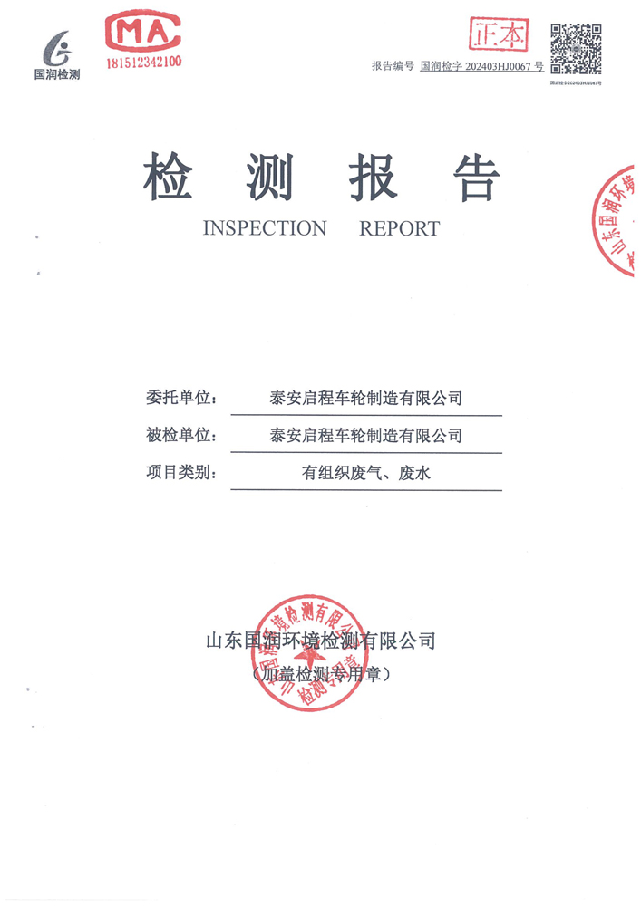 泰安啟程車(chē)輪制造有限公司2024年3月份環(huán)境污染物排放檢測(cè)報(bào)告